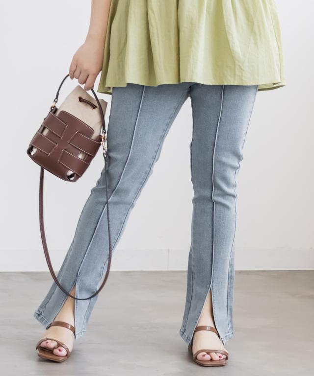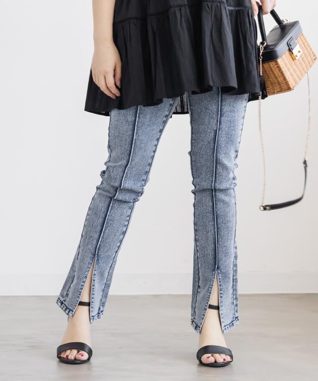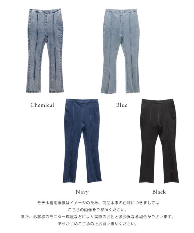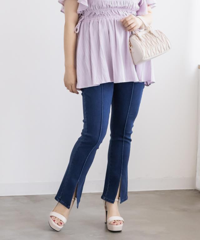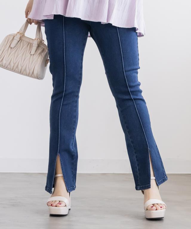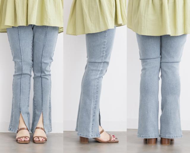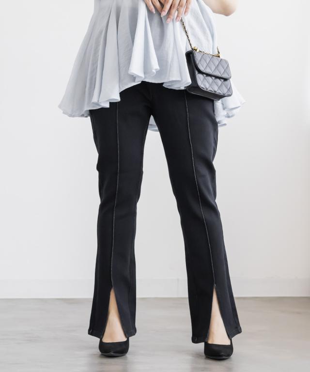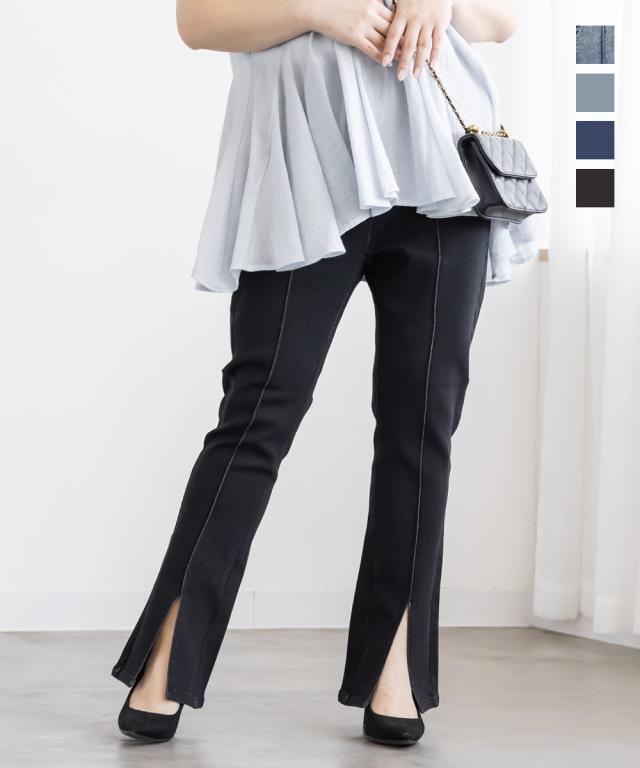 大きいサイズ/レディース/LL/3L/4L/CLETTEオリジナルストレッチデニムスリットフレアパンツ