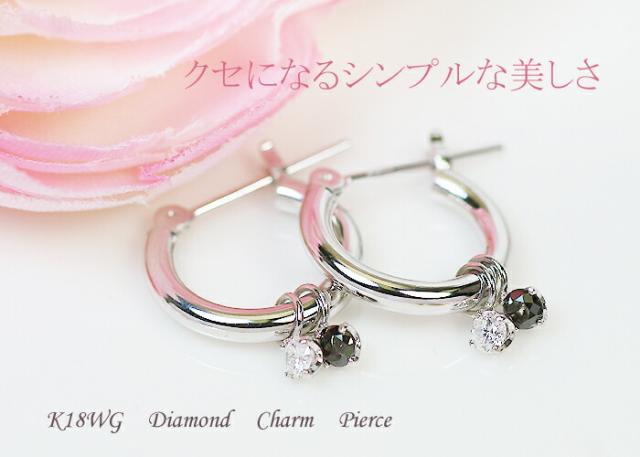 ピアス ブラック ダイヤモンド 0.1ct 18金 ホワイトゴールド K18 WG フープ クロッシング レディース アクセサリー ジュエリー ギフト 160229 ダイヤ