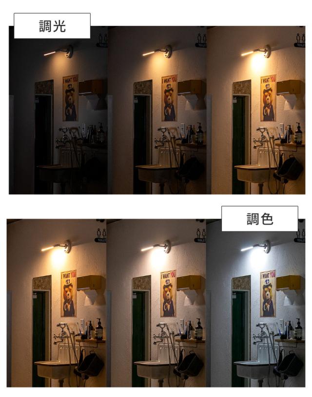 発光面は回転し角度を調節できます。壁に向けたり、天井や床に向けたり光の方向を調節できます。回転角度は約340度です。