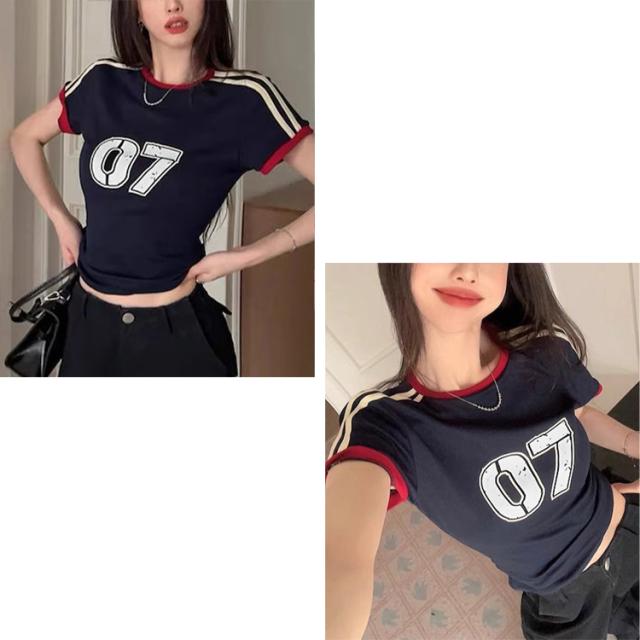 全品送料無料一部除く 07ナンバリング 袖ライン ゲームTシャツ ma 【即納】トップス 半袖 半袖Tシャツ スリムTシャツ タイトTシャツ スポーツTシャツロゴプリント 配色 ラインデザイン レディース 韓国 Y2Kファッション 韓国ストリート 流行り トレンド かわいい