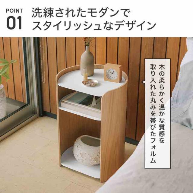 山崎実業 コンター サイドテーブル アプト 公式 APTO 10488 10801 サイドテーブル ベッド横 木製 スチール 丸 モダン 北欧 おしゃれ 高さ60cm ウッド ベッドサイド かわいい ホワイト ブラック 収納付き ソファ横 テーブル ミニテーブル デスク サイドチェスト 寝室 リビング