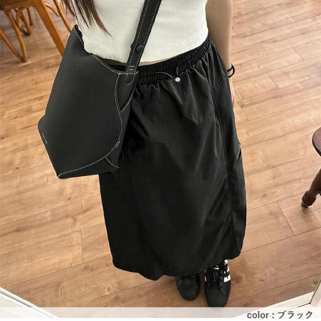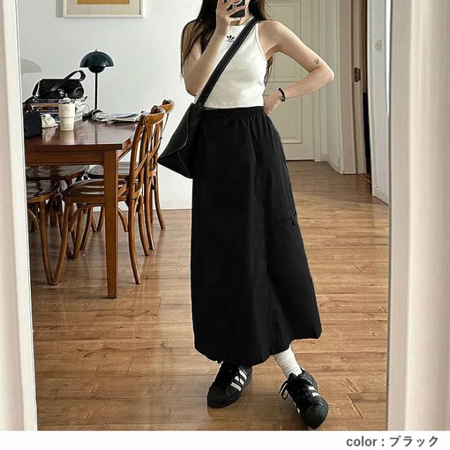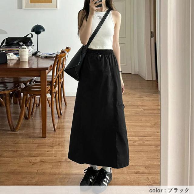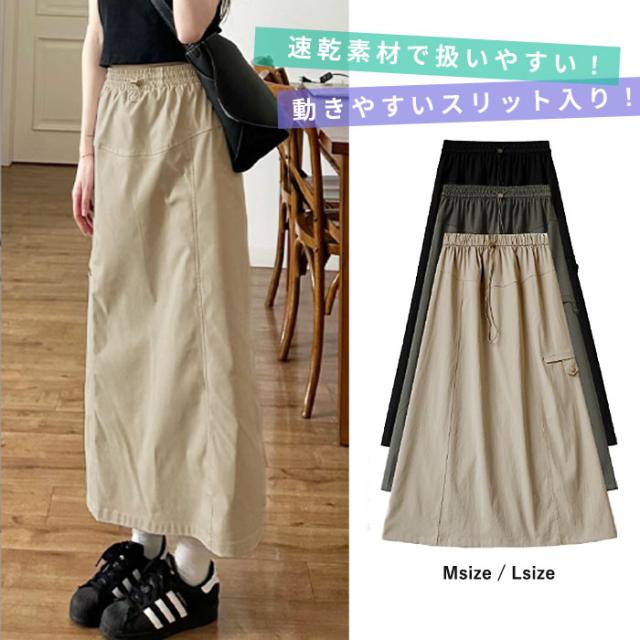 スカート レディース ボトムス 速乾素材 ロング丈 ウエストゴム スリット入り 春 夏 黒 おしゃれ [郵2]^b528^