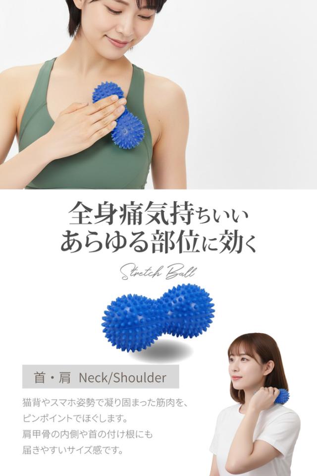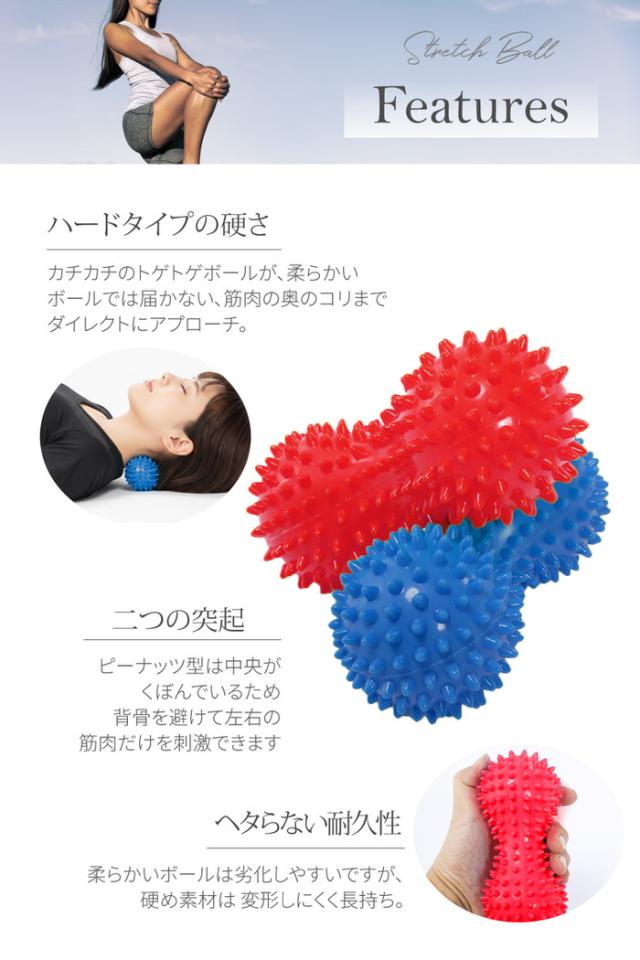 マッサージボール ストレッチボール ピーナッツ型 ハード 足裏 首 肩 腰 全身ケア コンパクト