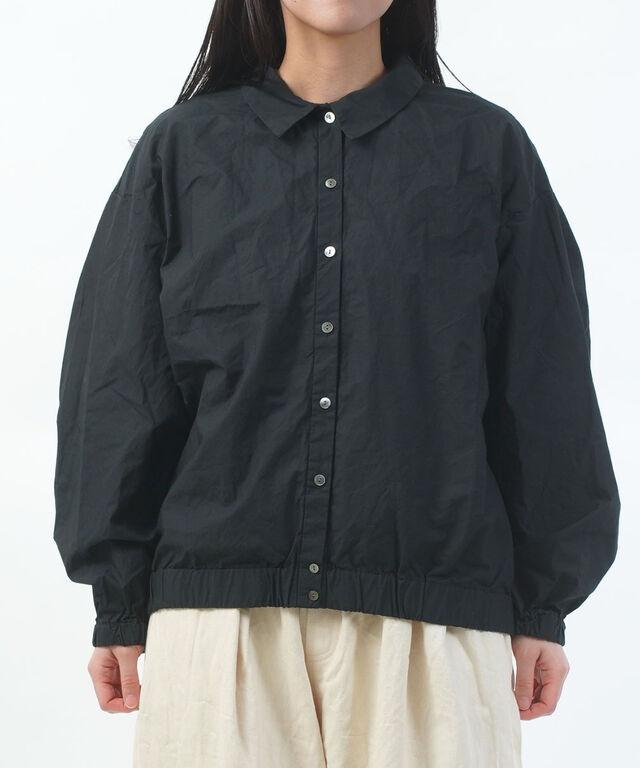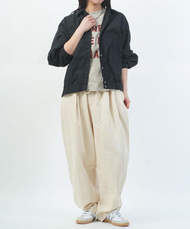 袖口と裾周りにゴムを加えることで、バルーンのような丸めのシルエットに。