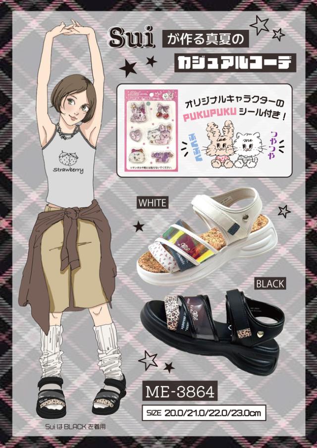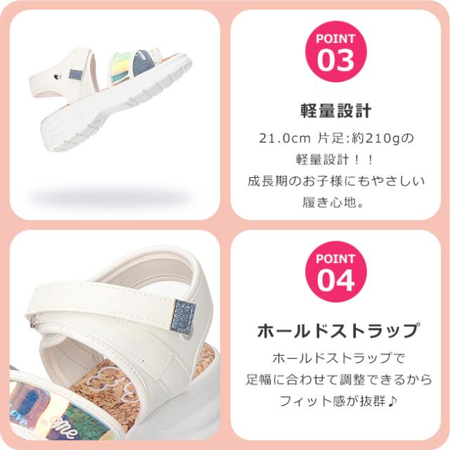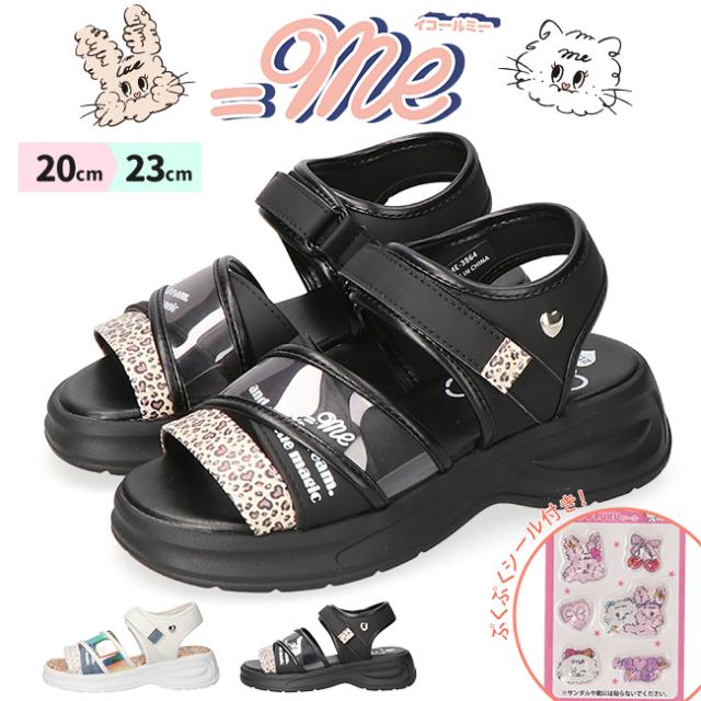 イコールミー サンダル キッズ 女の子 ぷくぷくシール 履きやすい 歩きやすい 疲れない おしゃれ かわいい 脱げない マジックテープ 軽量 厚底 ストラップ かかと付き かかとあり ME-3864 スポーツサンダル 子供 小学生 ジュニア スポサン シューズ 靴