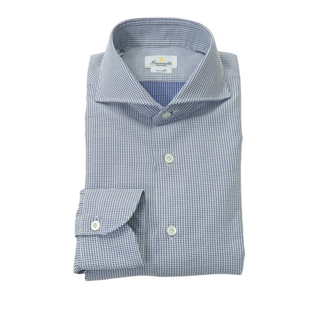 GIANNETTO ジャンネット メンズカッタウェイシャツ AC160 / VINCI FIT WASH ブルー×ホワイト 2026春夏新作