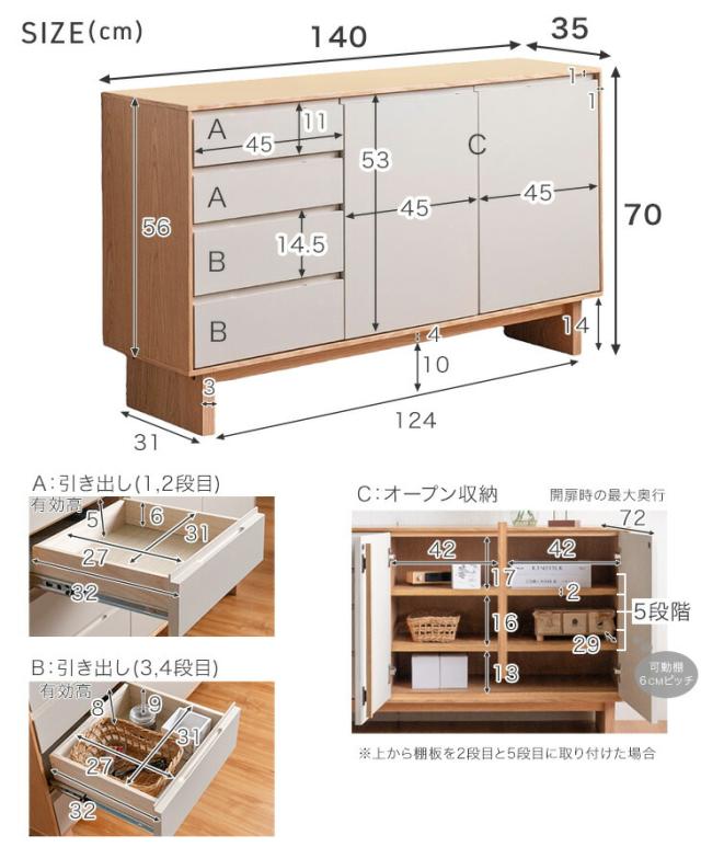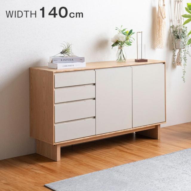 キャビネット サイドボード 完成品 140cm チェスト リビング 収納 収納家具 リビング収納 収納棚 飾り棚 引き出し 扉付き 両開き 140 コンパクト グレージュ ナチュラル モダン 北欧