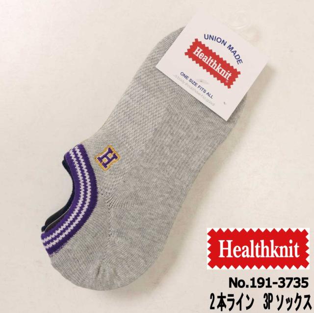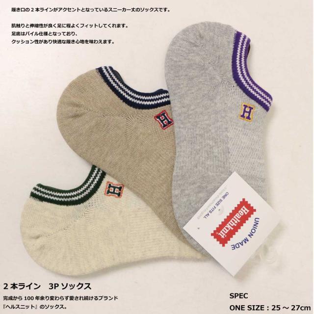 メール便発送 Healthknit 靴下 ソックス 3足セット 3枚セット 3枚組 ワンポイント ロゴ 刺繍 ライン 3Pソックス 191-3735 スニーカーソックス メンズ