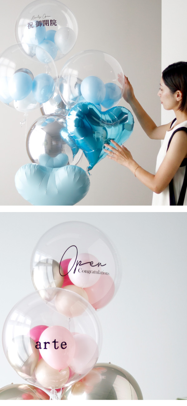 フワフワ浮かぶバルーンはパッと目立ってお店を華やかにしてくれるので お店の印象アップにつながること間違いなしです!