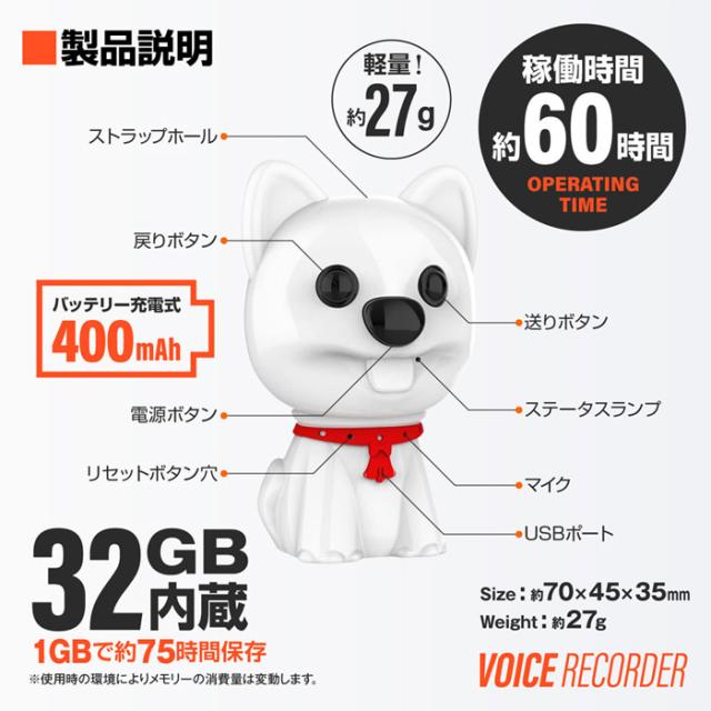 VR-800 音声感知自動録音機能搭載犬型キーホルダー型ボイスレコーダー【オンスクエア】