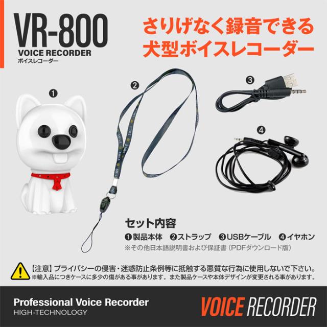 VR-800は、偽装カメラ(擬装カメラ)(スパイカメラ)関連のトップメーカーであるオンスクエア社の、犬型キーホルダー型ボイスレコーダーです。