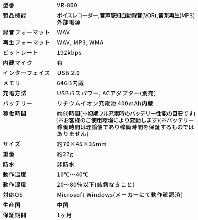 ■ VR-800 | 音声感知自動録音機能搭載犬型キーホルダー型ボイスレコーダー