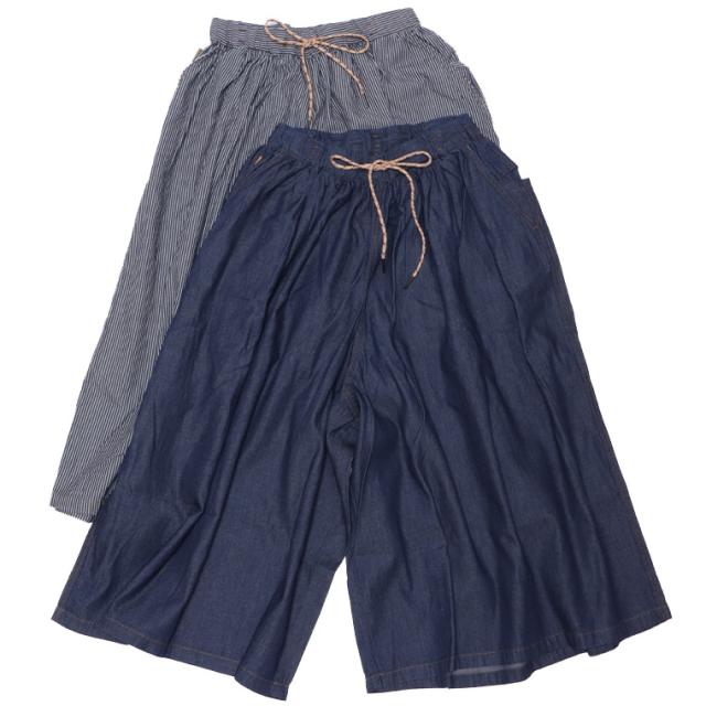 gymmaster ジムマスター G721756 ライトデニムスカーチョ スーパーワイドパンツ デニムパンツ スカーチョ ワイドパンツ レディース コットン100%