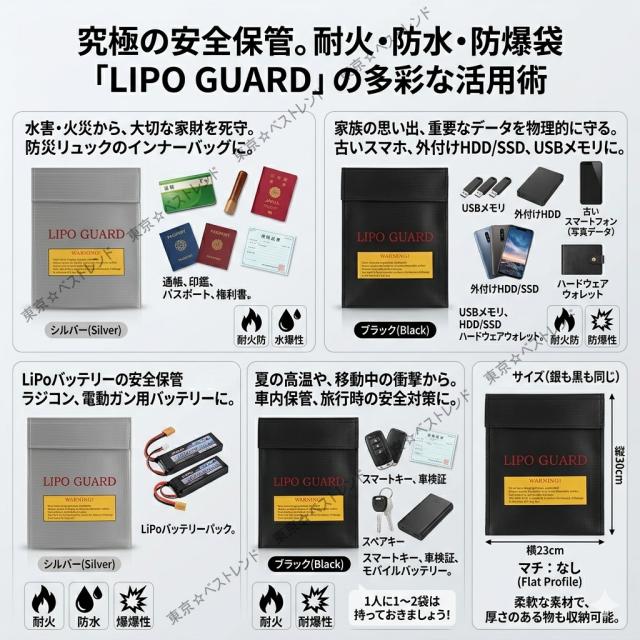 そんな身近に潜む危険から、あなたと家族、そして大切な財産を死守するために開発されたのが、耐火・防水・防爆性能を備えた究極の安全袋「TB-LIPOGUARD」です。
