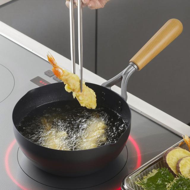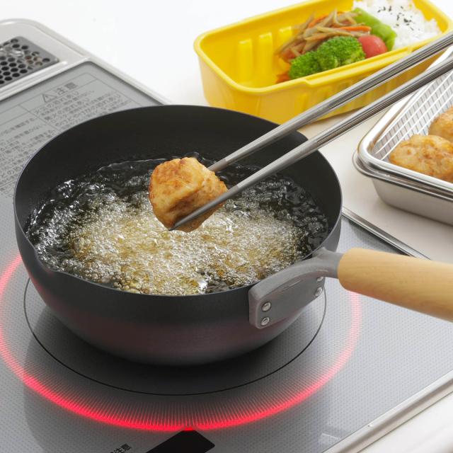 しっかりとした深さがあり、片手鍋のように使えるため、揚げ物調理にもおすすめです。油の温度が下がりにくく、カラッと美味しく仕上がります。