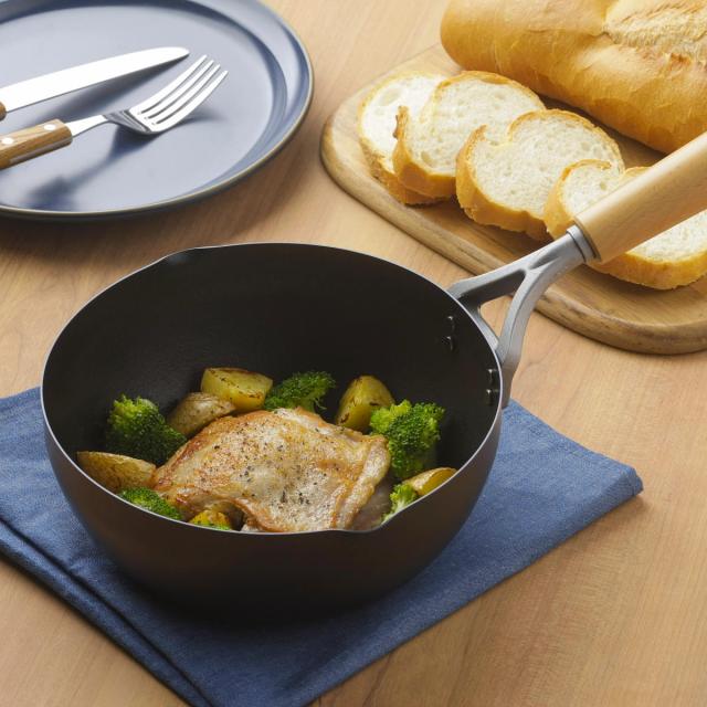 少量の揚げ物や焼き物にぴったりな小さめサイズです。コンパクトで取り回しやすく、朝食やお弁当のおかず作りに重宝します。