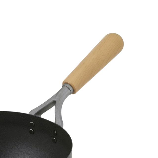 天然木を使用したハンドルは握りやすく、調理中も熱さを感じにくいため、快適に調理できます。