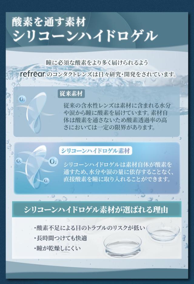 ■特徴:UVカット(UV-A約87%、UV-B約99%カット)、シリコーンハイドロゲル素材、うるおい成分配合(ヒアルロン酸ナトリウム、アルギン酸ナトリウム)、プリズムバラストデザイン