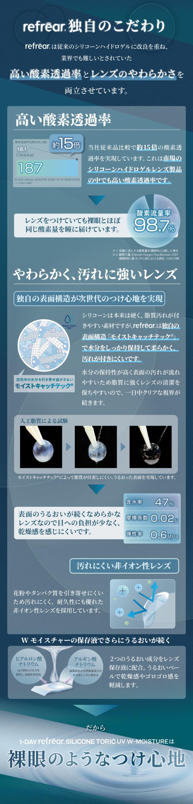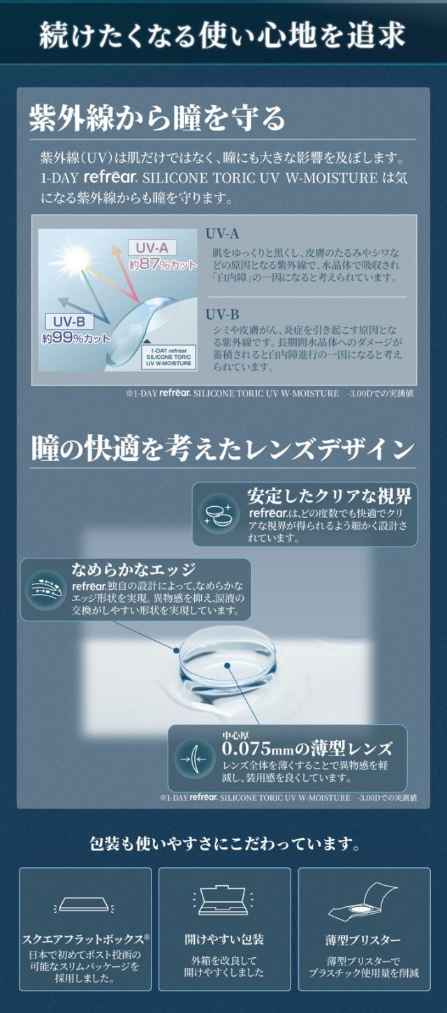 ワンデーリフレア シリコーントーリックUVダブルモイスチャー 1箱30枚入り 1-DAY refrear SILICONE TORIC UV W-Moisture メール便送料無料 乱視用 コンタクトレンズ 1day コンタクト ワンデー クリア トーリック ワンデーコンタクト 乱視 クリア レンズ 橋本 愛