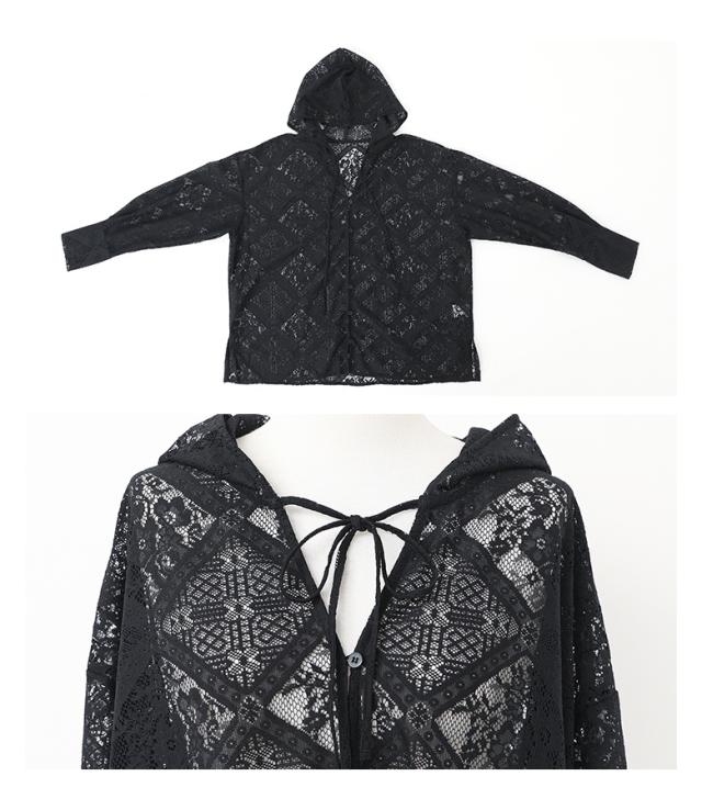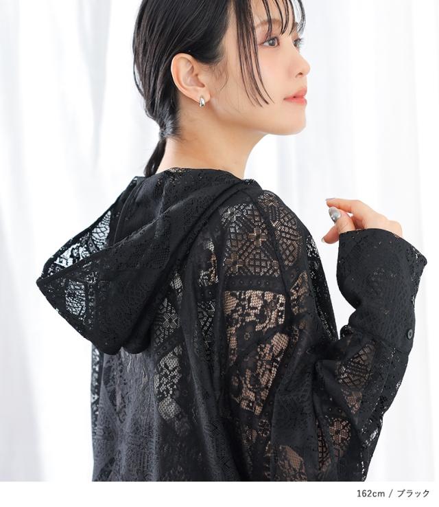 <春新作>『ブロックレースパーカー』※メール便可※【10】[パーカー レディース トップス フーディー 長袖 総レース ブロックレース 幾何学模様 フード付き 羽織り 春 夏 秋 オシャレウォーカー]