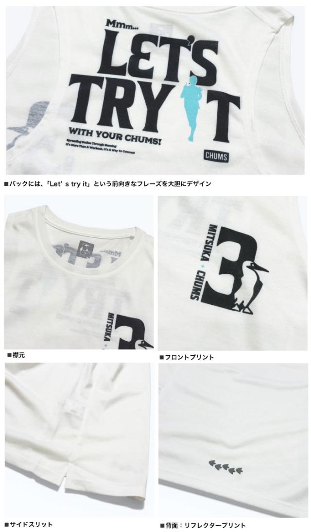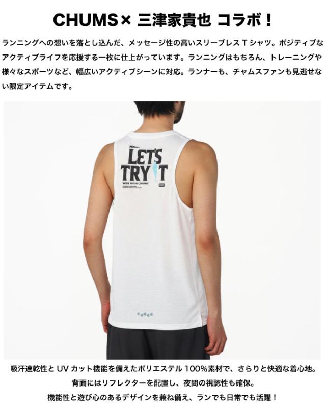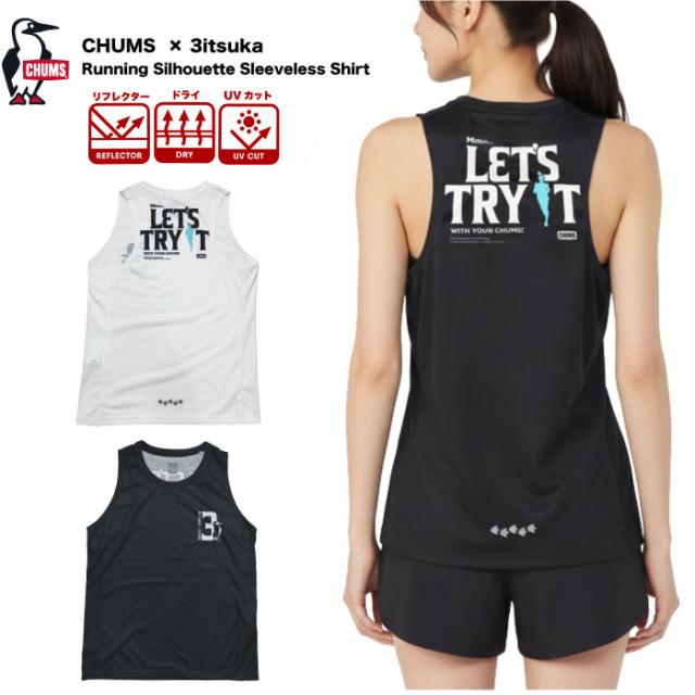 CHUMS チャムス×ミツカ ランニングシルエット スリーブレスシャツ タンクトップ ノースリーブ 吸水速乾 ドライ加工 UVカット リフレクター トレーニングウェア ジョギング マラソン ウォーキング ナイトラン メンズ レディース CH01-2799 CH11-2799 メール便対応