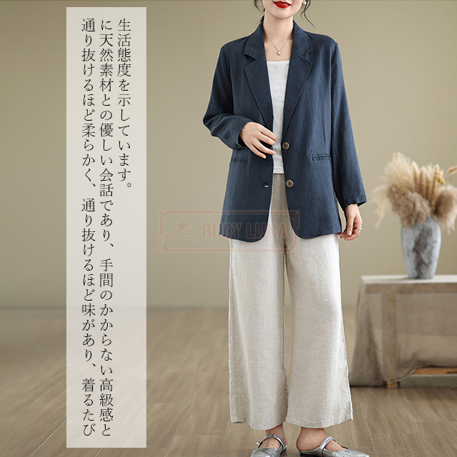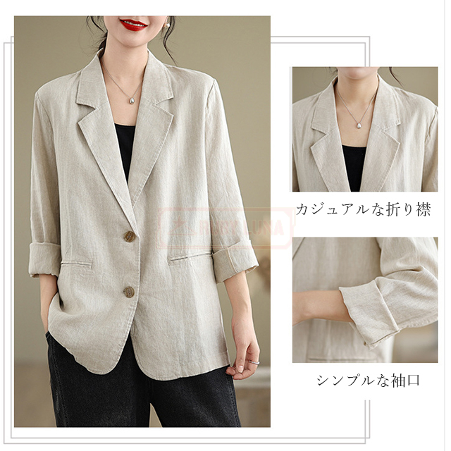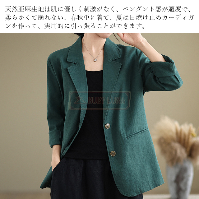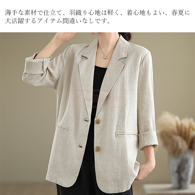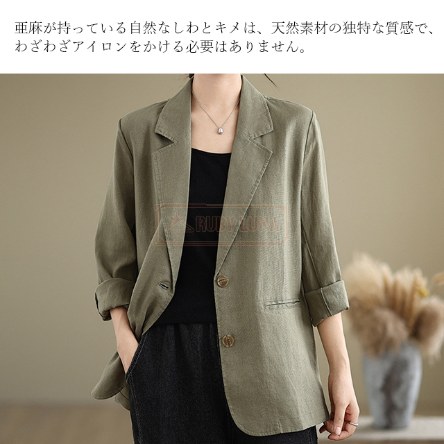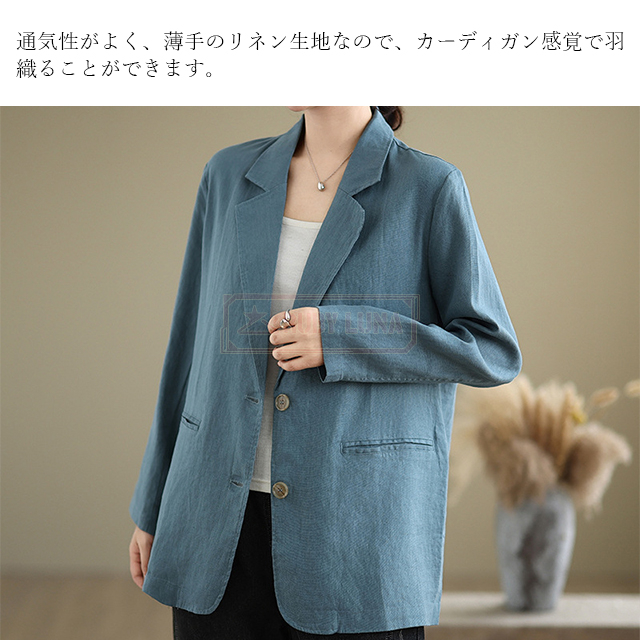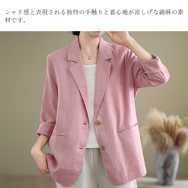 最安挑戦 春新作 送料無料 新作 テーラードジャケット レディース スーツジャケット 麻 リネン 前開き 春夏秋 涼しい 綿麻ジャケット 長袖 無地 ゆったり 体型カバー ビジネスジャケット 通勤 仕事 綿麻素材 無地 ショート丈