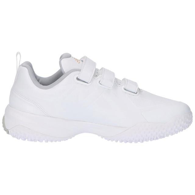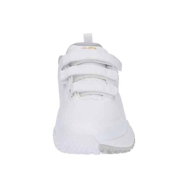 しなやかな合成皮革アッパーと幅広のウィズサイジングが抜群のフィット感を提供。