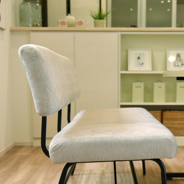 張地には肌触りの良いファブリック生地を使用。ナチュラルな風合いが空間に温かみを与えます。座面にはウレタンをたっぷり使用しており、程よいクッション性で長時間でも快適に座れます。