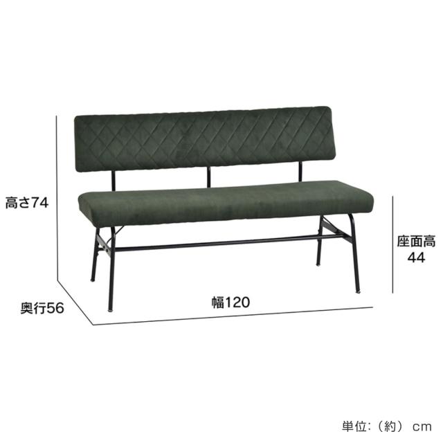 ダイニングベンチ 幅120cm 2人掛け スミレ スチール脚 ( チェア 長椅子 椅子 ダイニング ベンチ イス 食卓椅子 ファブリック 背もたれ付き ベンチチェア 食卓ベンチ いす 食卓 キルティング ダイニングチェア )
