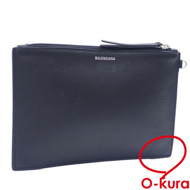 中古 バレンシアガ ポーチ レディース ブラック 黒 レザー 革 小物入