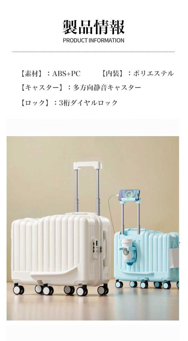 【サイドフック+3 桁パスコードロック】:スーツケース側面に便利なフックを装備しています。ショッピングバッグや手元の書類入れを掛けるだけで整理収納でき、「どこに置けばいいか」という慌てるシーンを解消します。3 桁パスコードロックは荷物の安全を強化し、待合時の一時離席や輸送中も、荷物の不正開封を心配する必要がありません。日常通勤や旅行中の安心感をサポートします。
