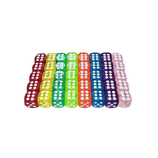 【パッケージ内容】6面サイコロ40ピース、8色の半透明(各色5ピース)。
