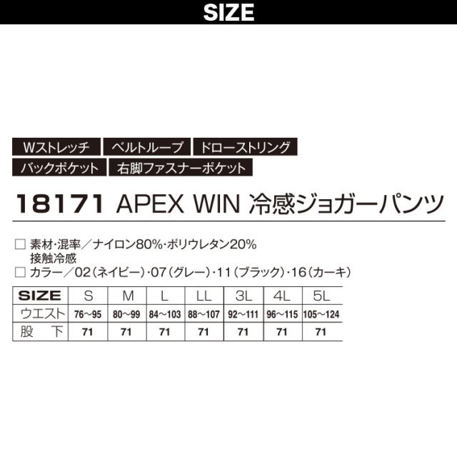 アタックベース APEX WIN 冷感ジョガーパンツ 18171 4L 5L 大きいサイズ ニット ナイロン 接触冷感 4WAYストレッチ 工事 建設 現場 倉庫 配送 屋外 レジャー アウトドア フローズンタッチウェア 春夏 作業着 作業服