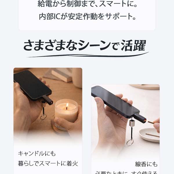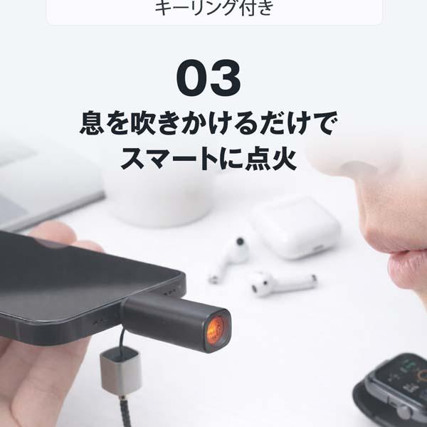 スマホに挿して、吹くだけ点火。充電もガスも不要な「新感覚」ライター。【次世代の着火体験】USB-C接続でスマホから直接給電。驚くほどミニマルでスマート。
