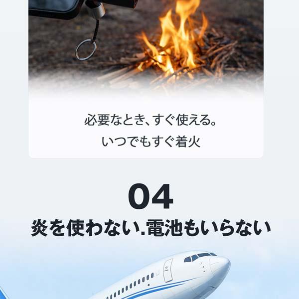・【強力ダブルアーク&圧倒的防風】 ダブルアーク×パルス技術で着火が速く、強風・高地でも安定点火。 アウトドアでも頼れる火を使わない点火方式。