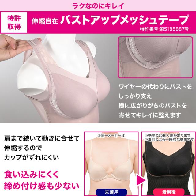 ワイヤーの代わりにバストをしっかり支え 横に広がりがちのバストを寄せてキレイに整えます