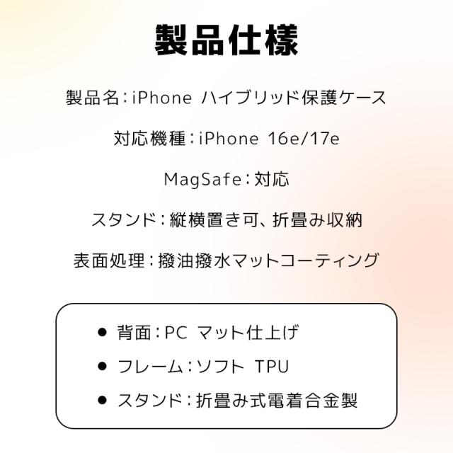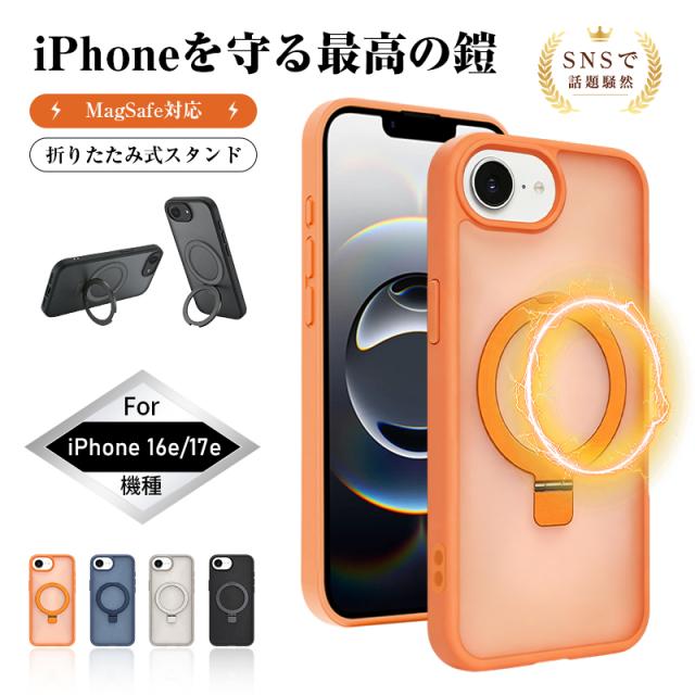 iPhone17e iPhone16e マグネットケース ハイブリッドケース 合金スタンド付き iPhone保護ケースカバー マット仕上げ 指紋つきにくい MagSafe完全対応 ワイヤレス充電対応 衝撃吸収 軍事レベル 耐衝撃 薄型 軽量 摩擦防止 ストラップホール付き 四隅補強 ギフト プレゼント