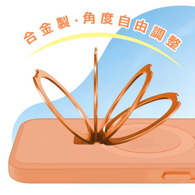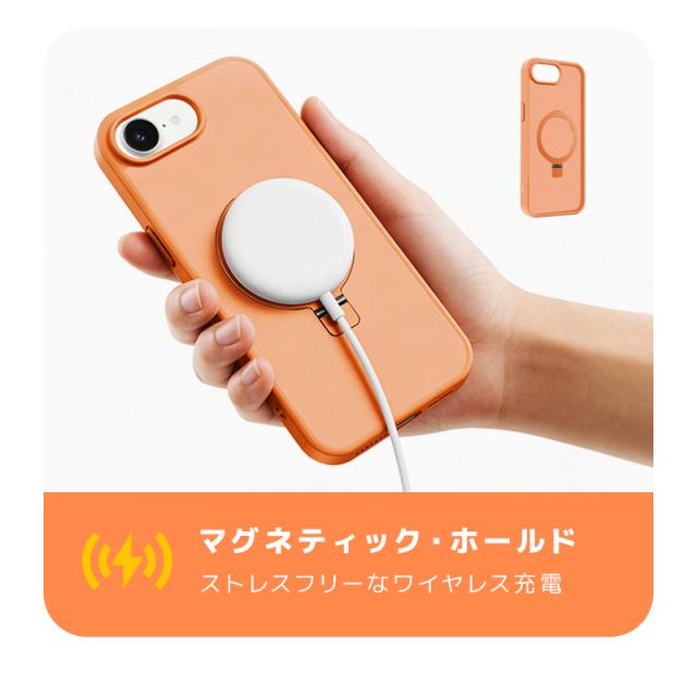 スタンド内部に高密度の磁石リングが一体成型されており、純正のMagSafeアクセサリーと強力に連結します。ケースを装着したままでも磁気吸着式の車載ホルダーにしっかりと固定でき、ズレや落下の心配がありません。
