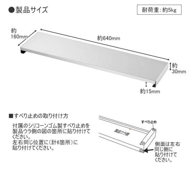 (約)幅640×奥行160×高さ30mm 幅約60cmまでのビルトインタイプのガスコンロ・IHクッキングヒーター、テーブル面に設置してください。 |