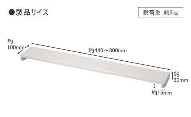 (約)幅440〜800×奥行100×高さ30mm 幅約60〜75cmまでのビルトインタイプのガスコンロ・IHクッキングヒーター、テーブル面に設置してください。 |
