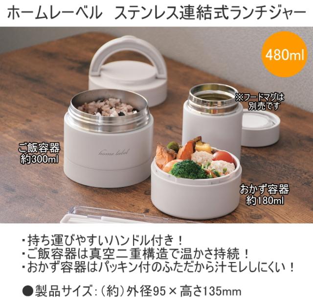 ホームレーベル ステンレス連結式ランチジャー 480ml 1個 送料無料 弁当箱 お弁当箱 ランチボックス ランチジャー 480ml 連結式 ハンドル付き 真空二重構造 ステンレス製 グレーホワイト ナイルブルー オーキッド おしゃれ シンプル 新生活 パール金属