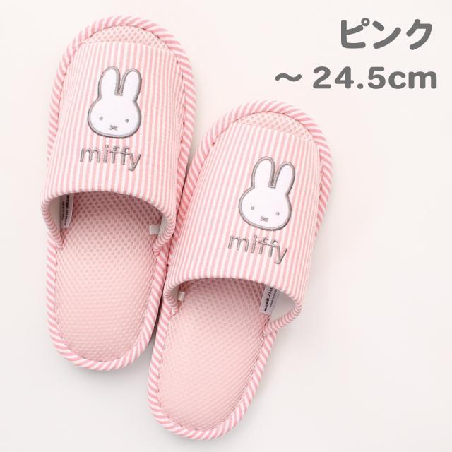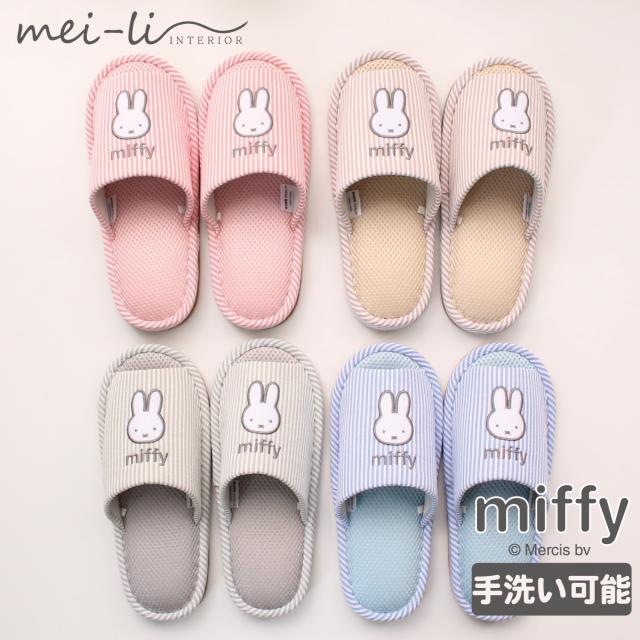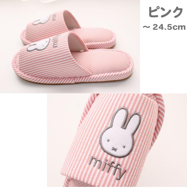 スリッパ 2足セット ミッフィー 洗える 春 夏 用 ルームシューズ メッシュ ストライプ クッション入り 前あき かわいい レディース ルームスリッパ 室内 送料無料