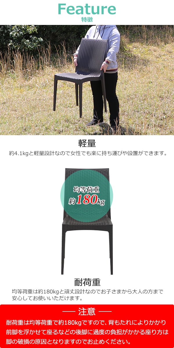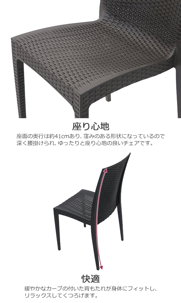 ラタン調 ラタンチェア プラスチックチェア ガーデンチェアー 肘無し ダイニングチェア 2脚セット UVカット 選べるカラー 耐荷重約180kg ラタン調チェア 背もたれ付き 庭 スタッキング ポリプロピレン製 PP ratchairp322p