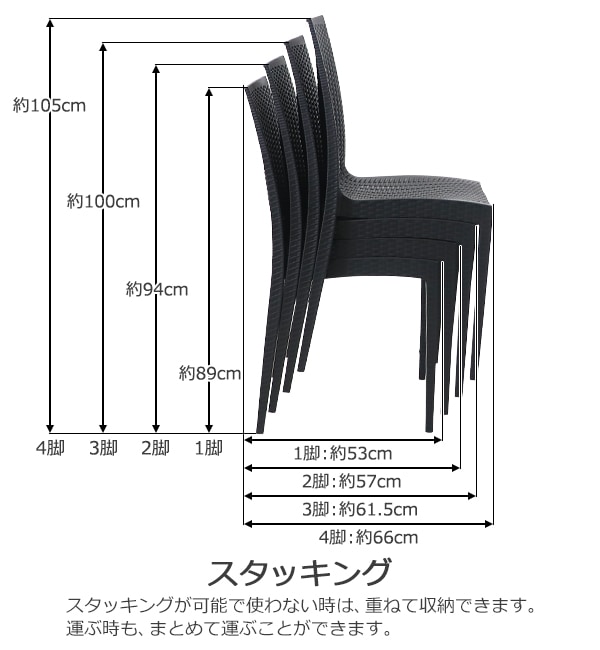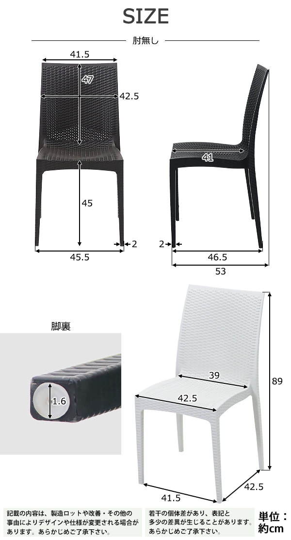 【肘無し】 2脚:W約 49×D約 55×H約 95.5(cm)/約10.2kg |