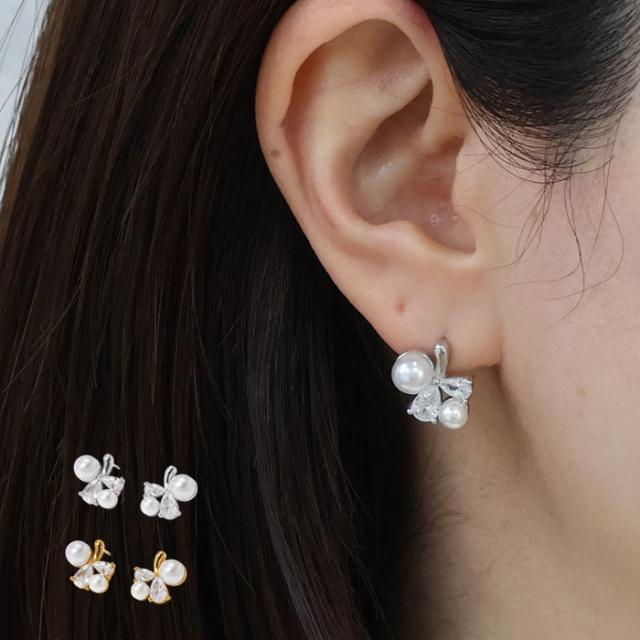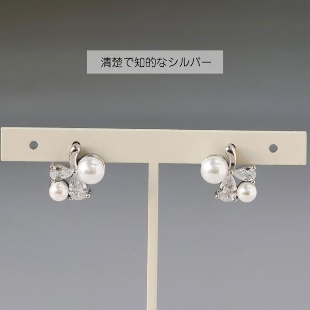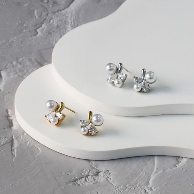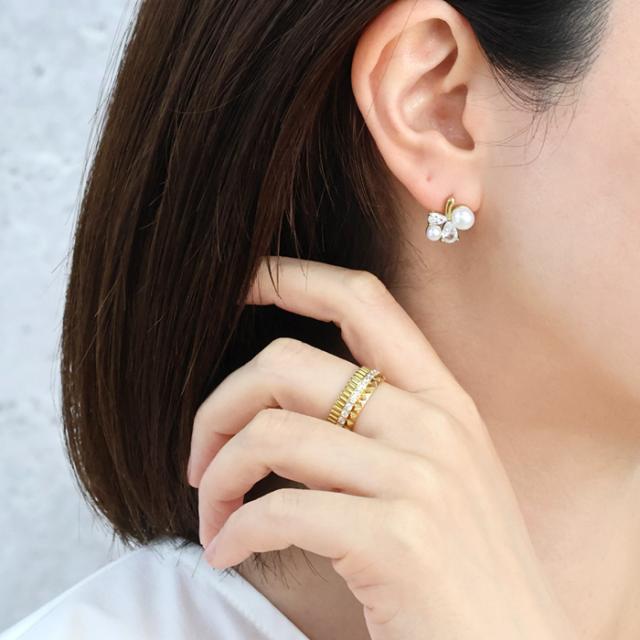 艶やかなフェイクパールと、ダイヤモンドのような輝きを放つキュービックジルコニア(CZ)を贅沢に組み合わせたピアス。 小ぶりながらも奥行きのあるデザインが、お顔周りをパッと明るく、華やかに彩ります。 日常のオフィススタイルから、結婚式やパーティーなどのオケージョンシーンまで幅広く活躍。 キャッチーなデザインながら上品にまとまっており、大人の女性の横顔をエレガントに演出します。 |