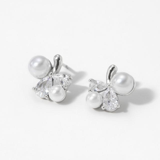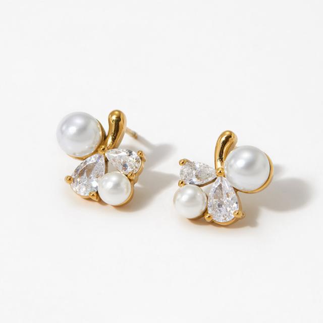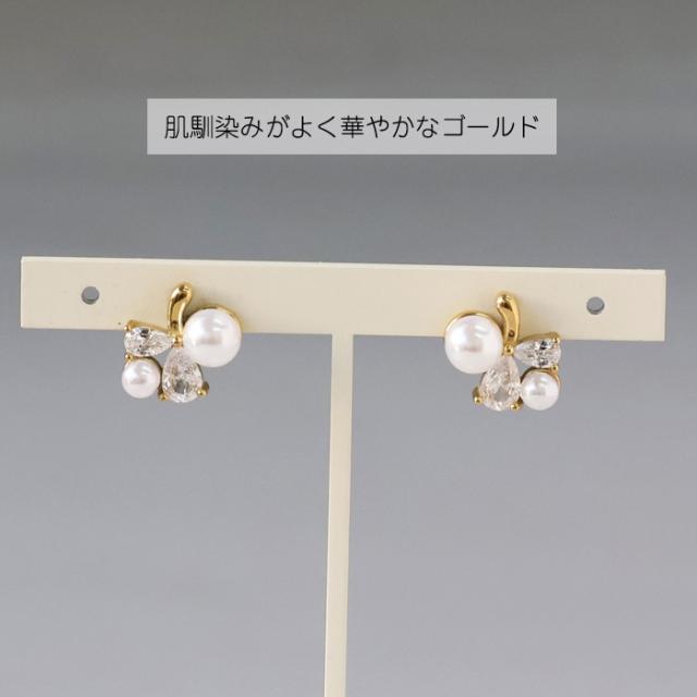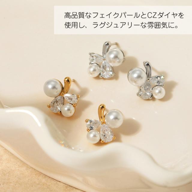 ピアス パール CZダイヤ フラワー ブドウ フェイクパール サージカルステンレス k18コーティング シルバー ゴールド 両耳 ペア 低アレルギー ジュエリー ニッケルフリー おしゃれ 入学式 卒業式 お呼ばれ カジュアル SUS316