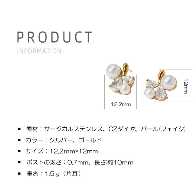 | 素材 | サージカルステンレス、CZダイヤ、フェイクパール |