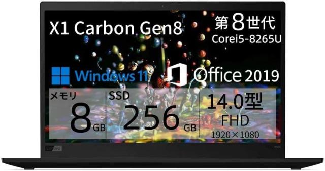 【整備済み品】ノートパソコン ThinkPad X1 Carbon Gen7 第8世代Core i5 14型FHD(1920x1080) 軽量 薄型ノートPC メモリ8GB /SSD256GB Webカメラ内蔵/無線LAN/Bluetooth/USB Type-C Windows11 Pro&Office 2019 付き 中古ノートパソコン ビジネスPC 90日保証付き