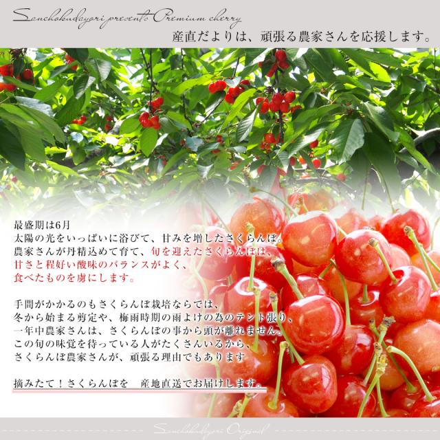 初夏の訪れを告げる、みずみずしい宝石さくらんぼ。口に入れた瞬間に広がる上品な甘み、ほのかな酸味、そしてパリッと弾ける食感。収穫後すぐに選別・出荷することで、鮮度そのままの美味しさをお届けします。収穫時に最適な品種でお届けします!