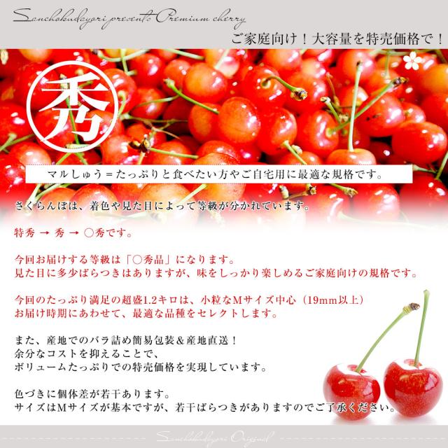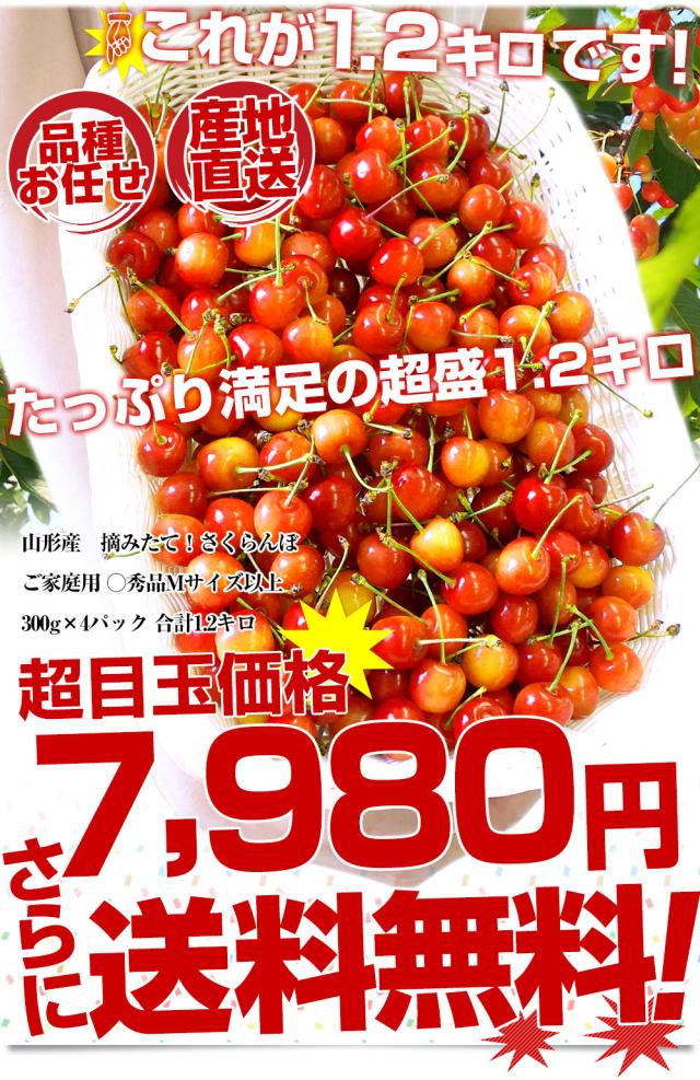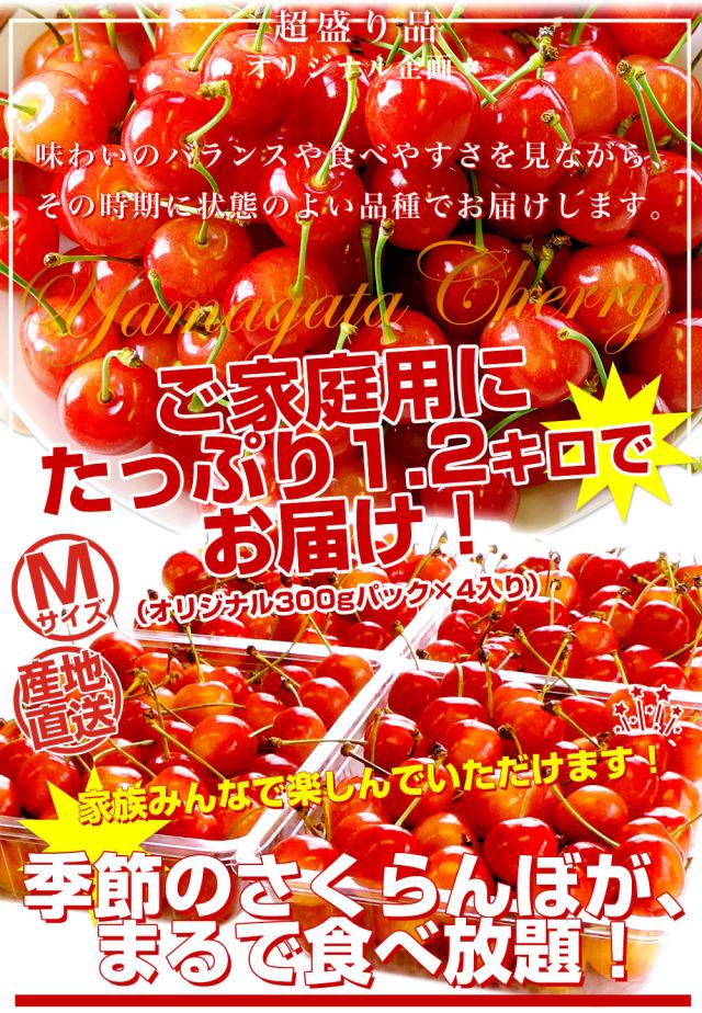山形県より産地直送!品種おまかせ ご家庭用 さくらんぼ 大ボリューム1.2キロ ○秀品Mサイズ以上(300g×4パック)桜桃 送料無料 クール便 サクランボ【発送時期:カート内に記載しております】
